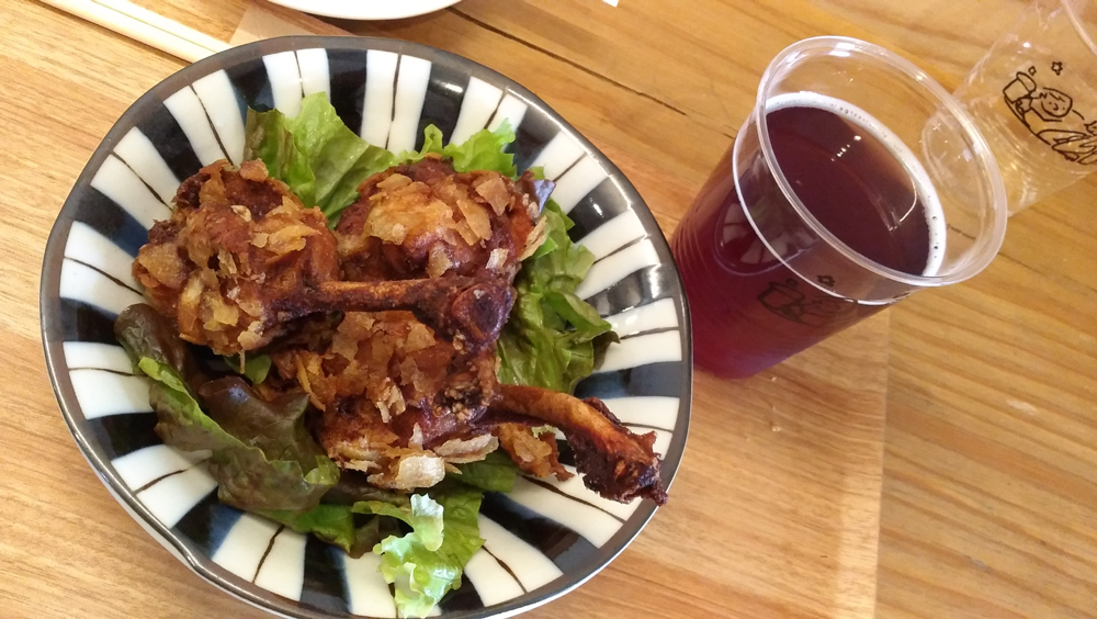 ビールは常時3種類以上あり、数日間で入れ替わるそうです。カレー味の骨付き唐揚げがジューシーで美味しかったです。