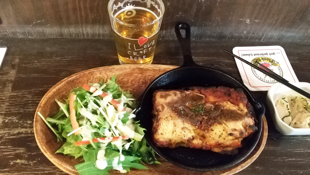 料理は名物のラザニアが大変美味しかったです。味が濃いので、さわやかなビールでいただくのがいい感じでした。飲み屋の聖地だけあってか量が多く、料理を席に運ぶと驚かれることがあるそうです。ガッツリビールと食事を楽しみたいときに最適なお店でした。